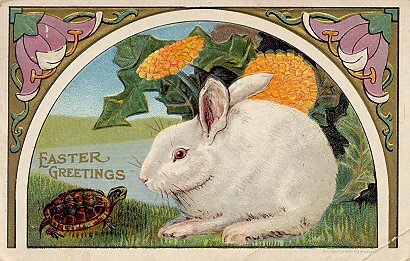 1905? "Easter Greetings" card featuring not only a hare but a tortoise! $4 from McCormick at the Sacramento Paper Fair, Dec., '96.