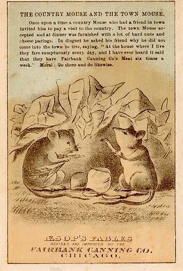 1900? Set of 12 monochrome -- brown against a cream background -- Creil Montereau plates. Each numbered plate offers an application or human occurrence of La Fontaine's fables. €100 from assietteparlante21 through Ebay, Sept. '21.