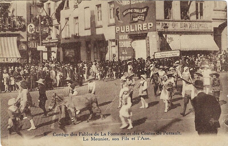 1935? Picture postcard. 3.5" x 5.5". "Cortege des Fables de La Fontaine et des Contes de Perrault, Le Meunier, son Fils et l'Ane." $5 through eBay.