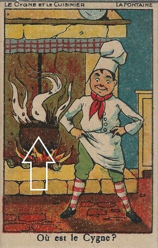 1964? Four E.S. Creation Carrère "en feutrine" black-background felt cards of La Fontaine's fables. E.S. Paris. $8 each from Bertrand Cocq, Calonne Ricouart, France, Sept., '20. Extra copy of FS for $8 from Cartophilian Collectibles, Cheshire, CT., Jan., '01.