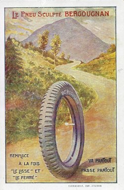 Each of the colored pictures here includes a quadrangular text of the fable from La Fontaine or, in the one case noted above, Florian. It also includes five circles arranged in relation to a major illustration of the story. Bergougnan seems to have been a major seller of rubber products, especially for automobiles. The cards frequently advertise Caoutchouc. Thérèse Boutigny is advertised as "Marchande de Mode" in Amiens. The two Boutigny cards were printed byi PaulVallier, Clermont FD Paris. This group may set a record for the number of advertisers -- and the number of forms one advertiser used -- to advertise his rubber products!