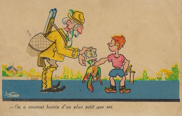1950? Humorous play on LM: "On a souvent besoin d'un plus petit que soi." I. Foggia. P-C Paris. $5 from an unknown source, Feb., '22.