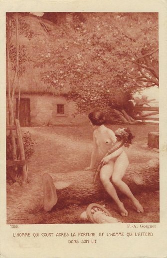 1900? Postcard "The Man Who Chases Fortune." F. A. Gorguet. Braun & Cie 7355. $7 from HipPostcard, Oct., '24.