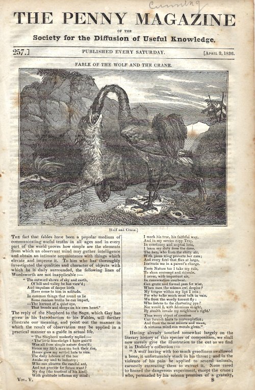 1836 The Penny Magazine, Vol. V, #257. London: The Society for the Diffusion of Useful Knowledge. Extra copy from an unknown source.