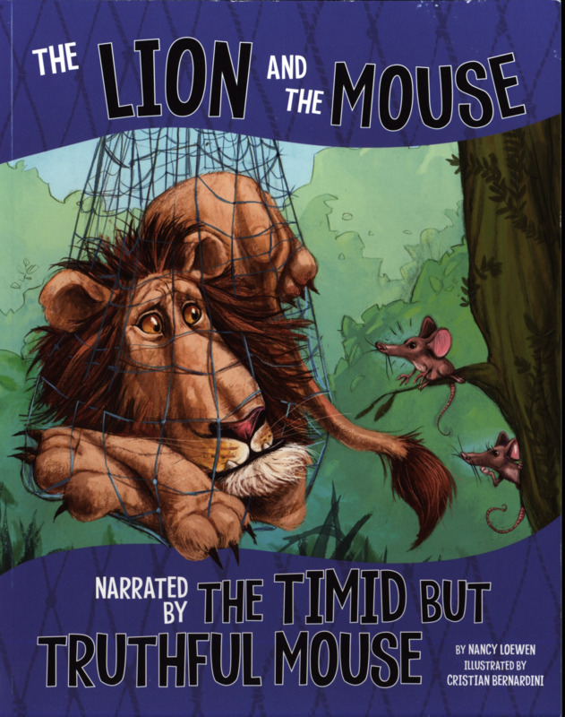 1920? Short cup 2¾" in diameter and 2¾" high. Title "The Lion & The Mouse" above the colored illustration, and "Those Who Do Not Abuse Their Strength/Benefit By The Gratitude Of The Weak" below. Gold trim around the top ring and along the front of the handle. Royal Winton, Grimwades. Made in England.