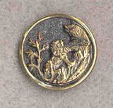 1890? 1 brass three-piece button of the Lion in a Lush Valley, 5/8" in diameter. Gift of Robin Larner, Rochester, NY, through Ebay, May, '99.