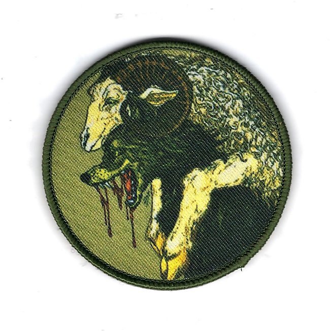 2024? Wolf in sheep's clothing arm patch. 3.1" x 3.1". Made in China. $5 from Joshua Jakobovich, Shiloh, Israel, Jan., '25.