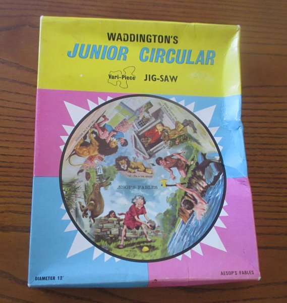 1970? Waddington's Junior Circular Jig-Saw: Aesop's Fables. Vari-piece. Circular. Stock No. 533. Diameter 12". 170 pieces. CLC 2020.0151.1. £3.99 from Richard Rayfield, Kent, UK, through Ebay, July, '05.