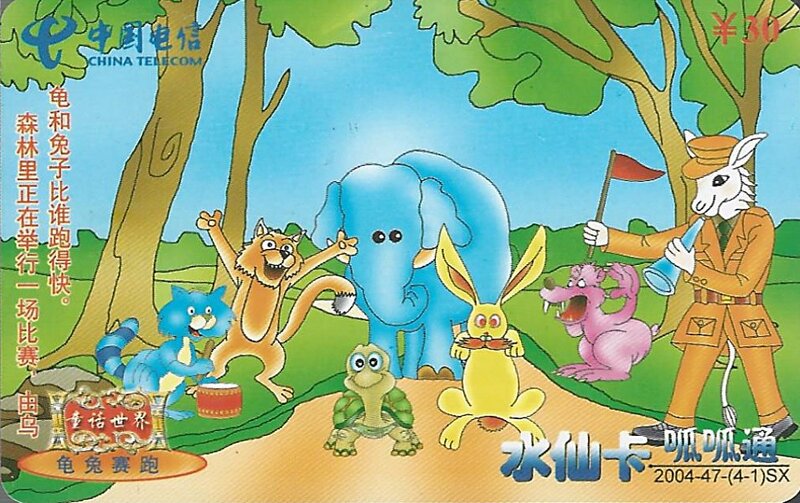 2004 4 China Telecom Telephone Cards featuring the Tortoise and the Hare. 2004-47-(4-1)SX, 2004-47-(4-2)SX, 2004-47-(4-3)SX, and 2004-47-(4-4)SX. £1.49 from Angela Linder, Hants, UK, through eBay, Sept., '06.