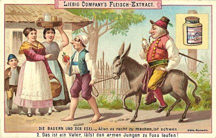 Solution Pautauberge 1900? Fables de LaFontaine. 30 cards (and many picture-duplicates) marked either "Collection de la Solution Pautauberge" (P) or "Collection de la Kolarsine et de la Solution Pautauberge" (K). With colored illustrations after Gustave Doré. Unnumbered. Printed in France. Twelve cards (all P) for $65 from Barense (or B & B?) at Foster City Card Show, Feb., '97. Ten cards (all K) for a total of 140 Francs from Librairie Bailly at Les Puces, Marché Dauphine, July, '98. $15 for FM (also K) from The Cartophilians, March, '96. Thirteen cards (12 K and "Le Gland et la Citrouille" P) for 390 Francs from Delage at Clignancourt, August, '99. One card (P) for $15 from Virginia Makis, Springfield, MA, Feb., '00. One card (P) for $2 at Jamie's Flea Market, South Amherst, OH, March, '00. Five cards (all K) for 135 Francs from P. Bresch, Clignancourt, August, '01. One card (P) for $9.99 from Constantin Sova, Bacau, Romania, through Ebay, Dec., '00. One missing card (P) of FC for $9.99 from Erwin Stubbe, Gent, Belgium, through eBay, August, '05. One missing card (K) of "Le Rat et l'Huitre" and three extras for €5 each from ABC de la C.P.A., Lyon, at Paris Post Card Exhibition, Jan., '05. Two P cards of "Le Gland et la Citrouille" and "Le Laboureur et ses enfants" for $6.50 from Sova Constantin, Bacau, Romania, through eBay, Feb., '03. Eleven extra cards for $5 each, Sept., '03. Many cards from St. Ouen, August, '15. Ten Pautauberge cards in very good condition for $15 Canadian, from yvr1 through Ebay, April, '22.