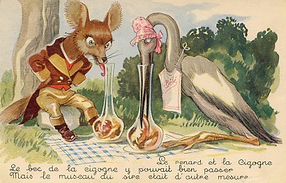 1920? X. Mauzan, "Le Renard et la Cigogne." $15 at Foster City, Feb., '97.