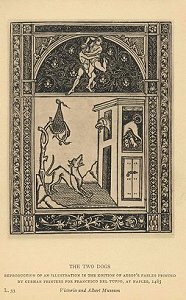 Under a black-and-white reproduction of the Tuppo original is a block-print title and then this uniform statement: "Reproduction of an illustration in the edition of Aesop's Fables Printed by German Printers for Francesco del Tuppo, at Naples, 1485." Just below, the picture-side lists the number of each card and "Victoria and Albert Museum." The verso is blank except for divisions into message and address compartments and instructions to use them as such. The envelope adds a price of one shilling. One can see here a good example of how lions looked in renditions of them done by artists who had never seen a lion! The following are included: