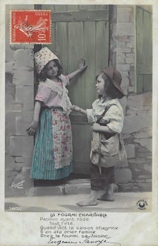 1907? "La Fourmi Charitable." Complete five card postcard series. Postmarked 1908. All sent to the members of the same family Capoulade in Nice. Paris: Croissant. Sazerac phot. $30 for the set of 5 from Bertrand Cocq, Calonne-Ricouart, France, Sept. '20.