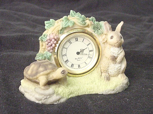The tortoise and the hare flank the face of the timepiece. One battery seems to last a very long time.