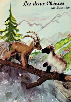 1970? Fables de La Fontaine. Eight cards of La Fontaine's fables with photographed scenes of plush animals and dolls. Numbered among a set of 114. Studio J.M. Piettre. Imprimé en France.