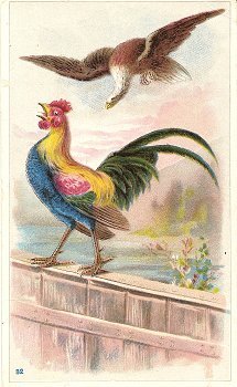 Individual cards may be identical with those from a set for McPhail Pianos. They share the "32" on the front of each card. They also seem to share the unusual characteristic of having only the fable text and the company name and place on the verso of each card. They seem otherwise to be the same as the various cards I have listed under J.P. Coats. The set includes: