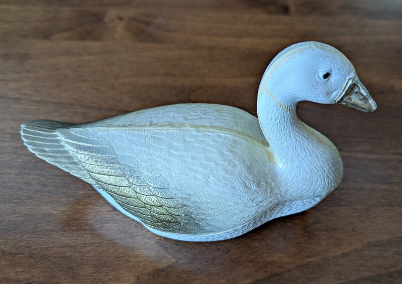 Gold luster glaze on the egg. This is a very large egg for this goose to have produced!