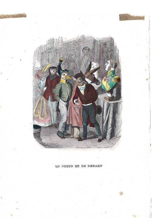 1838? Four hand-colored illustrations of La Fontaine’s fables by J.J. Grandville. 5.6" x 7.6". Unknown source.