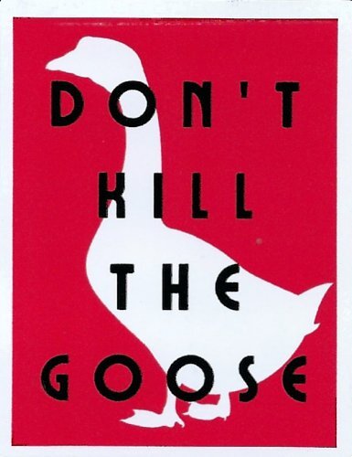1950? Goose Holding Golden Egg Salt and Pepper Shakers. Plastic. 5.25" long. 3.5" high. Made in USA. Davis Products. Unknown source.