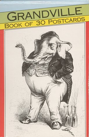 While the engraving is not as distinct as one would wish for Grandville's exquisite work, the coloring brings something new to his art. Both of these colored cards are done in portrait format. See also the landscape black-and-white inscribed postcard I have of Grandville's FS under individual postcards.