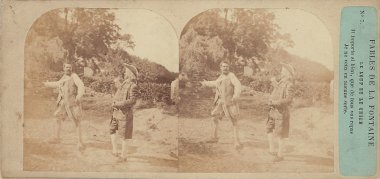 Do I understand correctly that the left-hand figure is the wolf starting to run away? As La Fontaine says, he is still running! I acted too slowly when several stereopticon cards came up at once. This was the only one left!