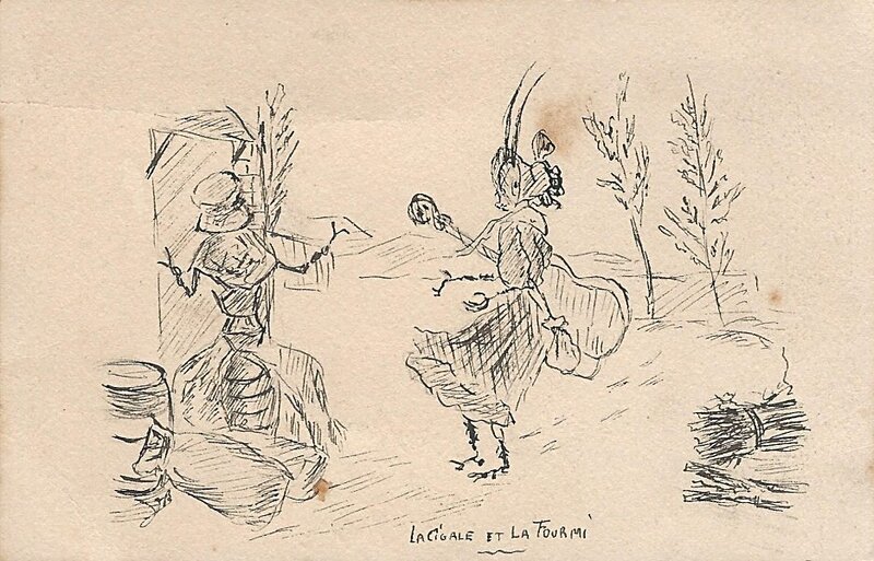 1915? GA postcard with a quotation on the grasshopper's plight in winter. Procédé au Chloro-Platine. #3102. €1 from anto-roma-ca through Ebay, August, '23.