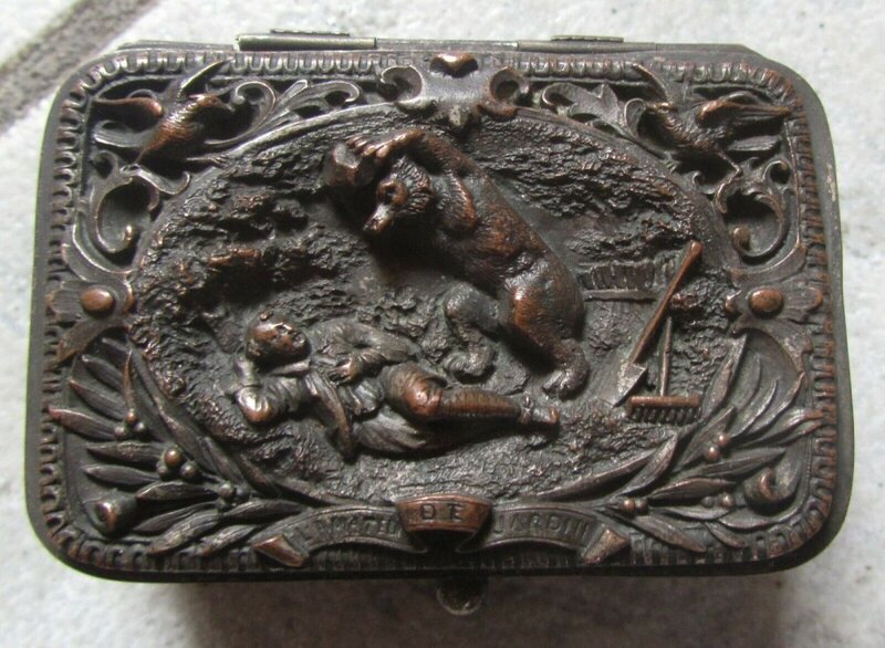 This is something new to me. The verso of each is the same, a representation of "Republique Française," apparently a 1 Franc coin from 1960. The other side is a small -- not quite 1" -- representation of a fable of La Fontaine with its title. These images are so small as to be difficult to photograph well!