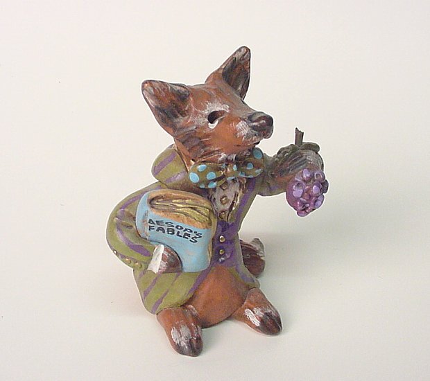 1986 Fox holding grapes. 3¼" high. Pat Lane Diaz, Wausau, WI. West Allis Craft Fair. Gift of Lois Carlson.