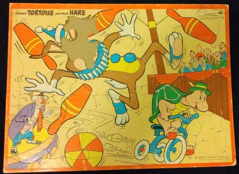 1949? Tommy Tortoise and Moe Hare Picture Puzzle. Harvey Famous Cartoons. No. 1230. Sta-N-Place Inlaid Puzzles. Made in USA. Unknown source and date of acquisition.