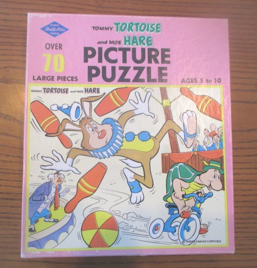 1949 Tommy Tortoise and Moe Hare Picture Puzzle. Over 70 large pieces. Ages 5 to 10. Harvey Famous Cartoons. No. 1017. Warren Built-Rite Puzzles. CFC 2020.0152.1. $3.99 from Bob & Veronica Quinn, Trimble MO through Ebay. June, '03.