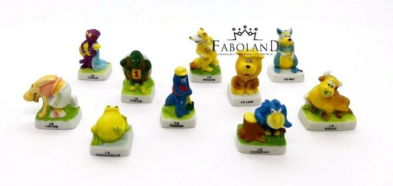 This set of fable fèves is unusual for offering only single characters paired with each other for five fables: FC, LM, TH, OF, and GA.. Better than usual facial detail. The cigale's sunglasses are excellent! - Source