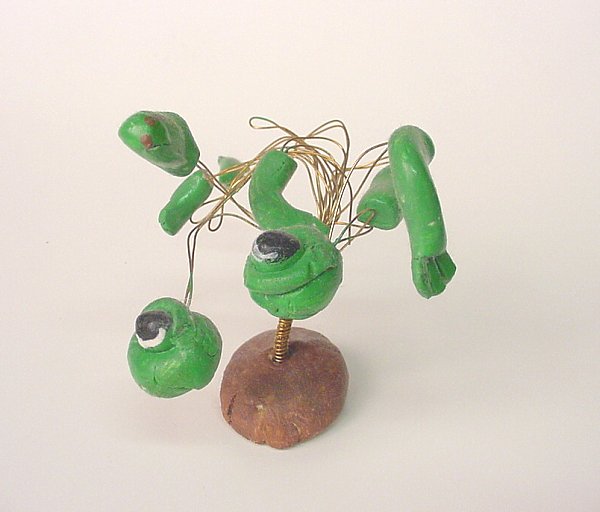 1987 Lois Carlson's scenes in baked clay of exploding frog. 3½" high. Gift of Lois Carlson.