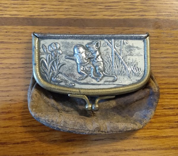 Now here is a first. A coin purse! There is an irony here. "The Frog and the Mouse" is a story of ugly hospitality. After the host mouse shows great hospitality to the guest frog, the host frog drowns the guest mouse -- but pays for it in the end by being supper for a hawk. Not the best advertisement for furnished rooms! - Source