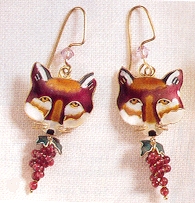 1996 Fox and Grape Earrings. Made in China. Topanga, California: Zarah Company. Gift of Margaret Carlson Lytton from Winterthur, Nov., '96.