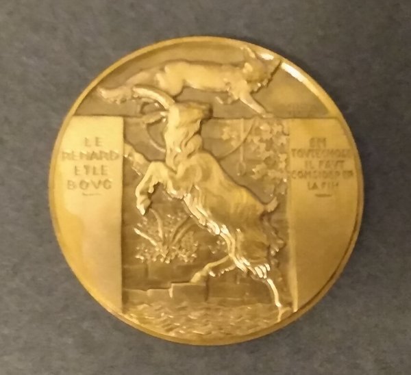 - Three came for $31 or $32 each from James Johnson, Tucker, GA, through eBay, August, '05. Two-sided medallion of La Fontaine and his muse for $25 from numest, Talinn, Estonia, through Ebay, August, '21. "Fox and Goat in the Well" for $4.99 from T. Lantz, Isle of Palms, SC, through Ebay, May, '22.
