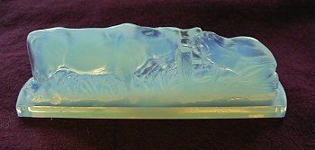 1990? Sabino "The Frog and the Ox" opalescent figurine paperweight. 4½" long, slightly less than 1½" high, and less than 1" wide in its base. Mint. Signed. Original box. Paris: Sabino. $60 from R.T. and Carol Brower, Mountain Collectibles, Ridgway, CO, through Ebay, Nov., '99.