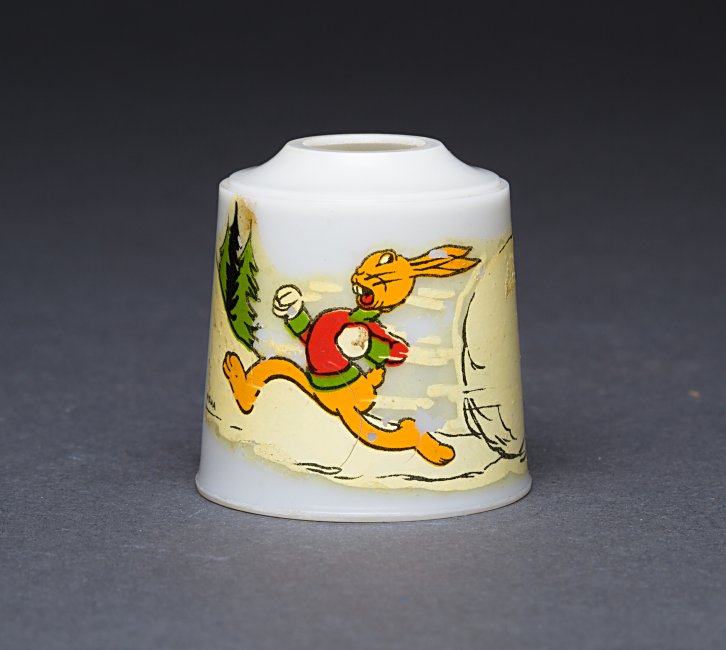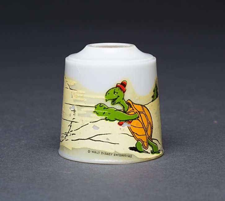 Wow! Who would have thought it! Here is a plastic cone-like Christmas light cover shaped to fit a Noma candle. I cannot do better than to offer the seller's eBay description: "It is a white plastic, with a decal on it of the tortoise and the hare. The tortoise is actually pushing a huge snowball behind the hare, who's running like crazy! The decal is marked Noma and Walt Disney Enterprises, and is in amazingly great shape! The height of the cover is 1⅝" and the bottom diameter is 1½"." This has to be one of the more unexpected items in this whole collection! - Source
