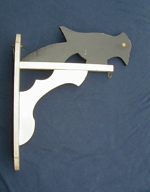 1939? Crow and Pitcher Flower-Pot-Hanger. Wooden, four pieces, painted crème and black. 12" x 10½" x 3". Liberty, Maine: Liberty Giftcrafters. $25 from The Maine Emporium, Bowdoinham, ME, through Ebay, Feb., '00.