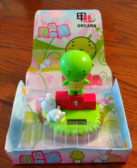 It takes very little sunshine to get this tortoise to move his oversized head! According to web resources, Orcara is a Chinese toy manufacturer that produces a diverse range of high quality miniatures. This TH sun catcher seems no longer to be available. This bunny sleeps while the tortoise wobbles proudly on the victor's stand. - Date
