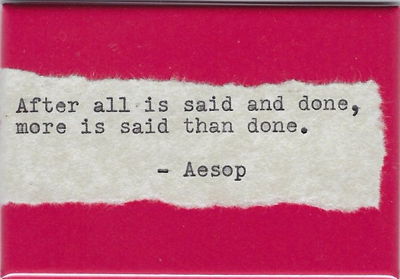 2020 Refrigerator magnet "When all is said and done, more is said than done. –Aesop". $5 from StuckOnUArt through Etsy, July, '20.