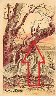 I doubt that this is really a fable card. It is a hidden-picture card, with a fox to be found by the clever observer. The back makes an offer "Mail us 10 for Comic Pictures, Mail us 25 for Beautiful Pictures." I take it this is one of the former, cheaper variety! Browns and reds. A small symbol at the lower right of the picture says "N 718." - Date