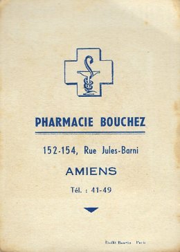 - $15 from Bertrand Cocq, Calonne Ricouart, France, Sept., '18. Five more cards and three duplicates, all from Pharmacie Bouchez in Amiens, for €6 from chromosetcollections through Ebay, August, '22.