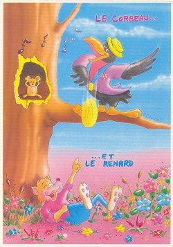 1996? Two cards in a series of Jean de la Fontaine's fables. TMCM and FC. Abeille-Cartes. Paris: Editions Lyna. Postmarked from Fresnes en Woevre, Meuse, in October of 1996 and from Presles, Val d'Oise, in June of 1997, respectively. €1.50 apiece from Gérard Crucy at the Paris Post Card Exhibit, Jan., '05.