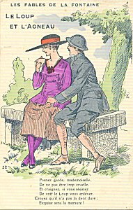 1917 "Les Fables de la Fontaine: Le Loup et l'Agneau." #52. Unmarked. €8 from Haon Cartophilie, Begues, at the Paris Post Card Exhibition, Jan., '05.