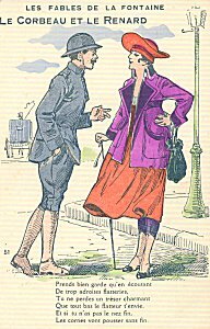 1917 "Les Fables de la Fontaine: Le Corbeau et le Renard." #51. Unmarked. €8 from Haon Cartophilie, Begues, at the Paris Post Card Exhibition, Jan., '05.
