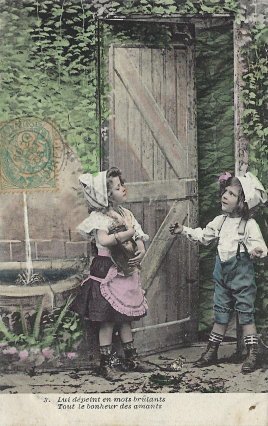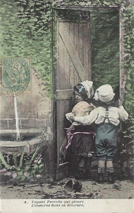 1906 6 postcard series featuring children Perrette and Colin. Postmarked all to Marguerite Giltat, June 25, 1906. $36 for the set from Bertrand Cocq, Calonne Ricouart, France, Sept., '20.