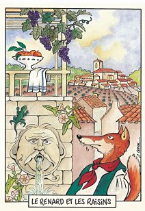 1992 Jean Claval "L'Aventure Carto: Les Fables de La Fontaine." One title-card and 37 of 40 portrait postcards offering humorous interpretations of La Fontaine's fables. #AC 92001 through AC 920041. $120 from Bertrand Cocq, Calonne Ricouart, France, Sept., '18.