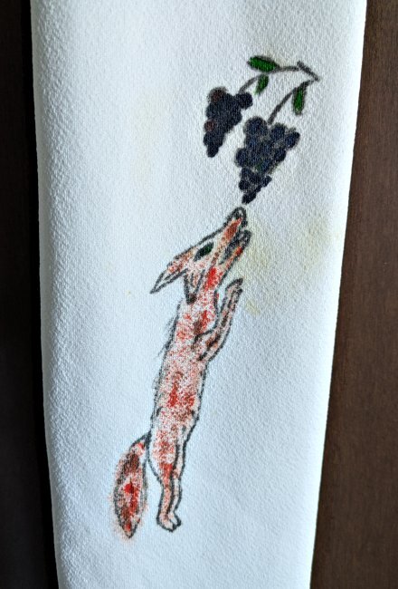Eric brought together two dear facets of my life: priestly ministry and fables. Among the fables recalled here are TH; TT; LM; “Three Fish”; “Stag at the Pool”; “Retired Rat”; FG; BF; “Heron”; and OR. I offer two close-ups from a treasured creation. - Date