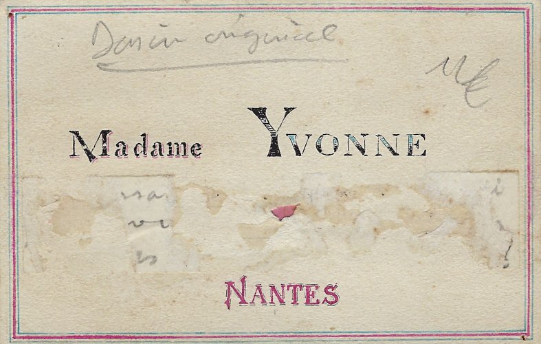 1950? Original hand-painted card, 5½" x 3½", presenting CW. Nantes: Madame Yvonne. €10 at Recto-Verso, Strasbourg, July, '19.
