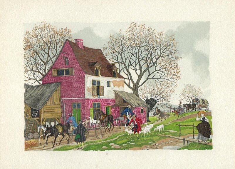 1996? 32 colored woodcuts after watercolors by Henry LeMarié, engraved by hand by Jean Taricco. Printed on Velin de Rives in the studio of Editions d'Art Les Heures Claires in Paris. Beautifully mounted and presented in two elaborate boxes. Signed in pencil? €450 from Plazzart, Paris, Sept, '20.